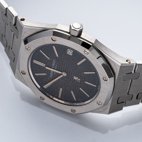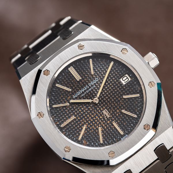 Audemars Piguet, per la creazione dell’iconico modello Royal Oak, incaricò il famoso designer Gerald Genta, che sviluppò per questo orologio una cassa monoblocco caratterizzata da una lunetta ottagonale, fissata da otto viti esagonali in oro bianco e da un quadrante con motivo tapisserie.