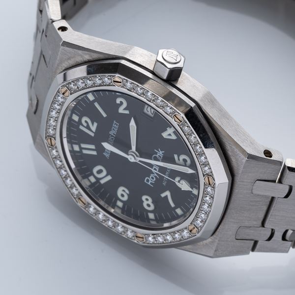Note: Quadrante nero con numeri arabi 'military', sfere a gladio luminescenti. Vetro minerale piatto, ghiera in diamanti factory.