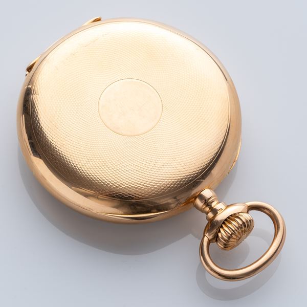 OROLOGIO DA TASCA A CARICA MANUALE IN ORO GIALLO 18KT E PICCOLI SECONDI A ORE SEI.