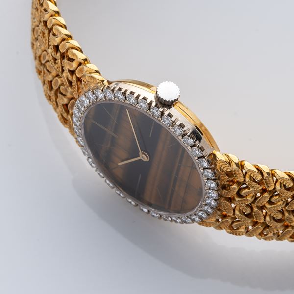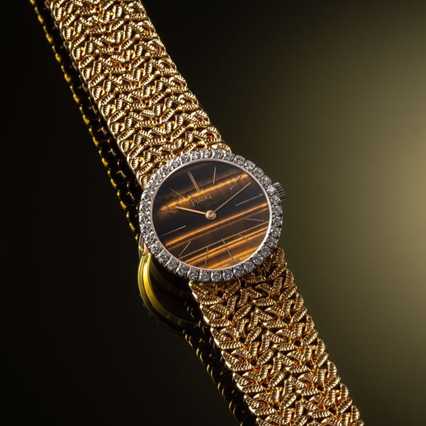 PIAGET - OROLOGIO ELEGANTE DA DONNA A CARICA MANUALE IN ORO GIALLO 18KT CON QUADRANTE IN PIETRA OCCHIO DI TIGRE.