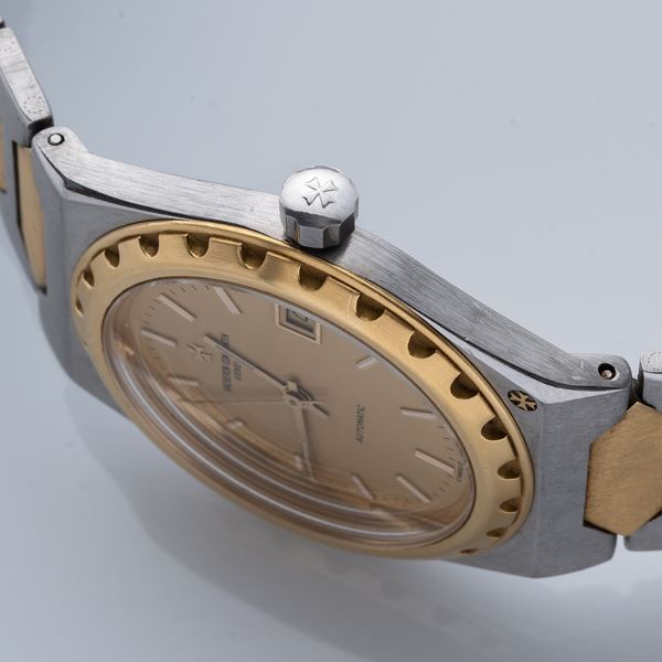 Note: Orologio acciaio e oro 18kt, quadrante champagne con indici in oro , sfere a bastone, datario ad ore tre. Vetro minerale piatto.