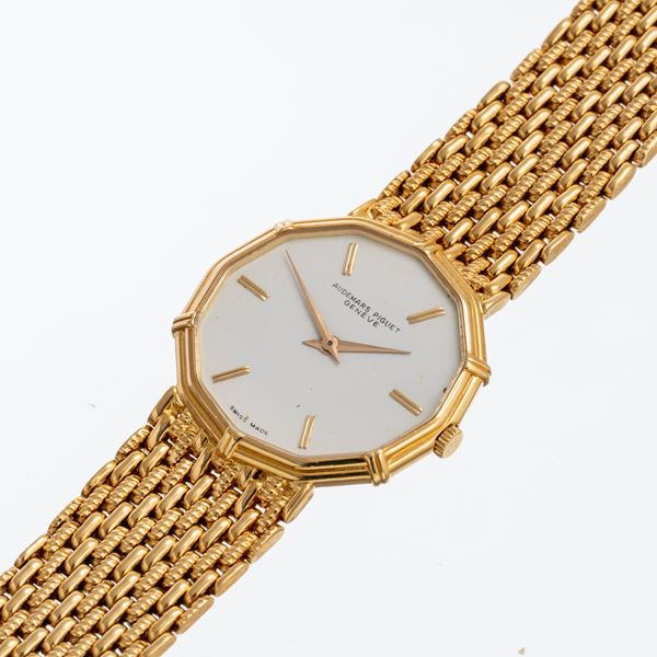 Note: Orologio solo tempo a carica manuale in oro giallo 18kt con bracciale integrato in oro giallo 18kt. Quadrante bianco. Indici e sfere a bastone in oro giallo 18kt. Vetro minerale piatto. Fondello a pressione in oro giallo 18kt.