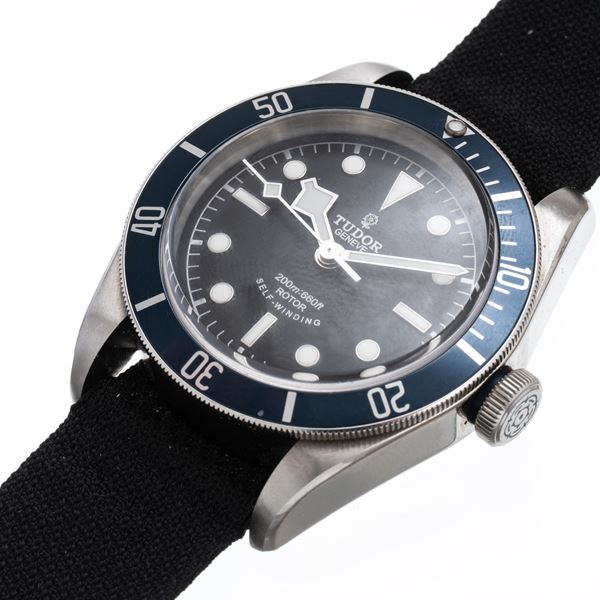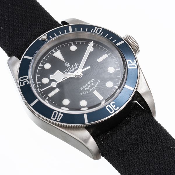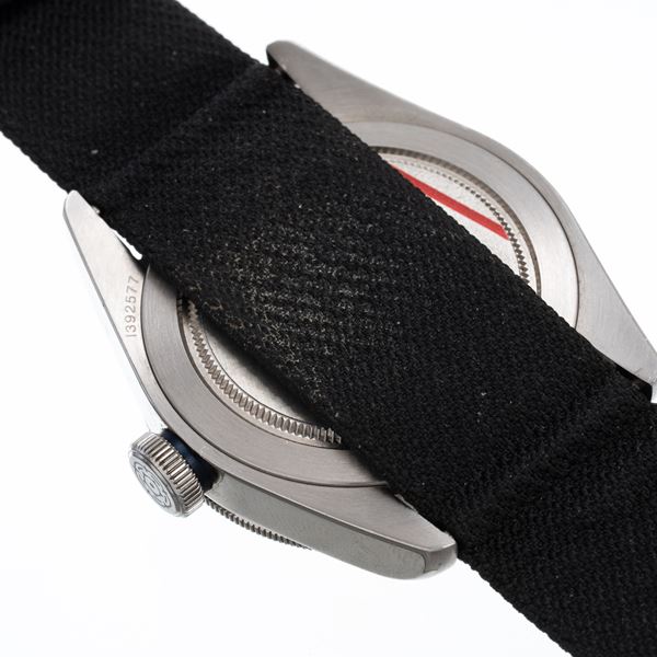 Note: Orologio solo tempo a carica automatica in acciaio con quadrante bianco e ghiera girevole blu. Indici bicchierini e sfere snowflake con materiale luminescente. Corona a vite, vetro zaffiro bombato. Fondello a vite in acciaio.