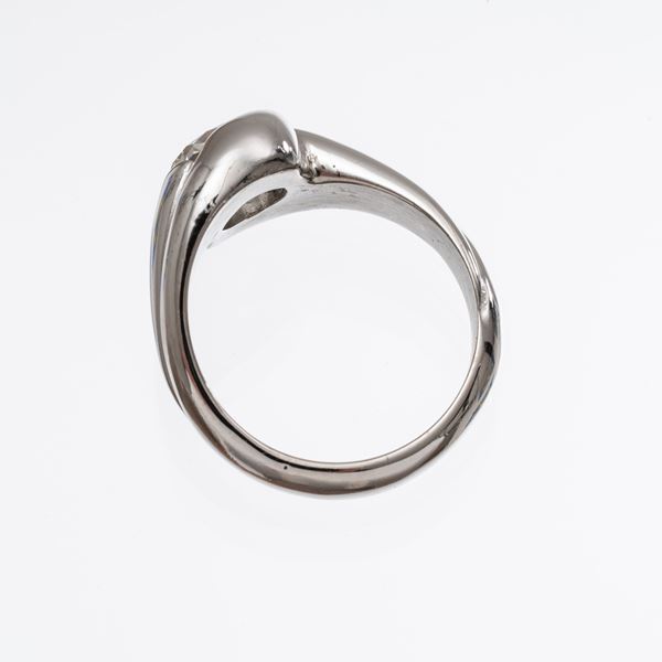 ANELLO IN ORO BIANCO 18 KT CON DIAMANTE TAGLIO BRILLANTE E DIAMANTI TAGLIO TONDO E CARRE'