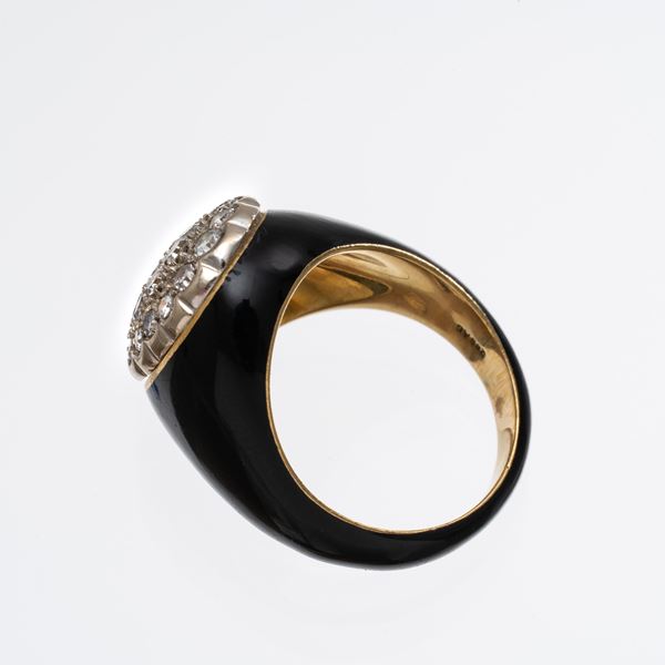 Oro giallo 18 kt e smalto nero con parte centrale in pavè di diamanti taglio brillante huit-huit per circa 0,50 CT.