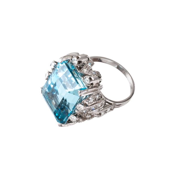ANELLO IN PLATINO E ACQUAMARINA