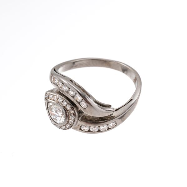 Anello in oro bianco 18 kt a forma di serpente con una goccia di diamante di 0,50 ct e un contorno in diamanti taglio brillante di 0,40 ct