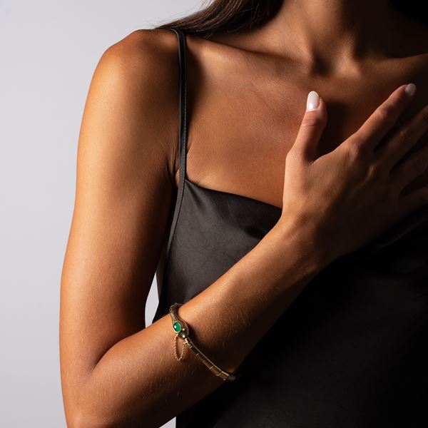 BRACCIALE IN ORO GIALLO 18 KT A FORMA DI SERPENTE CON AGATA VERDE