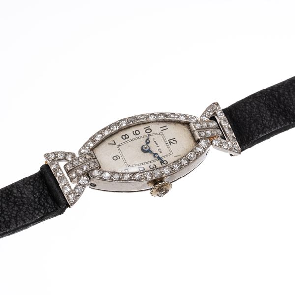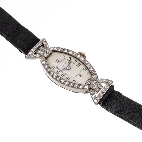 OROLOGIO SOLO TEMPO A CARICA MANUALE IN PLATINO CON QUADRANTE BIANCO E CASSA DIAMANTI TAGLIO BRILLANTE