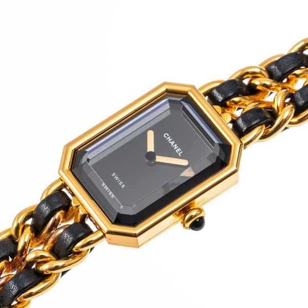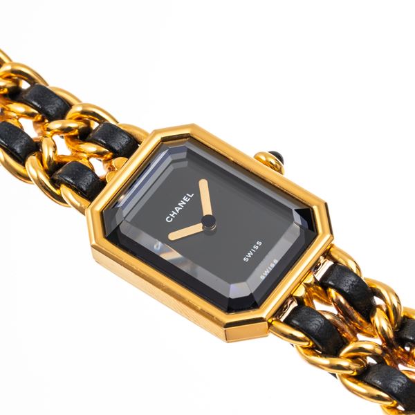 Note: Orologio solo tempo al quarzo con cassa ottagonale placcata oro. Quadrante nero, sfere a bastone dorate. Bracciale integrato placcato oro e pelle. Vetro otagonale piramidale. Fondello a pressione.
