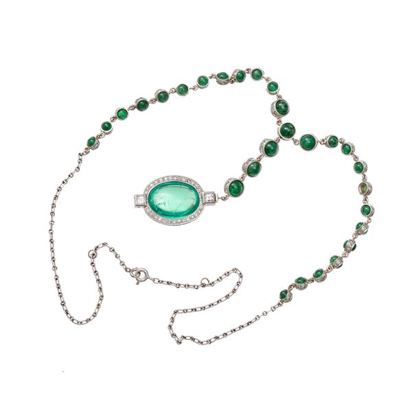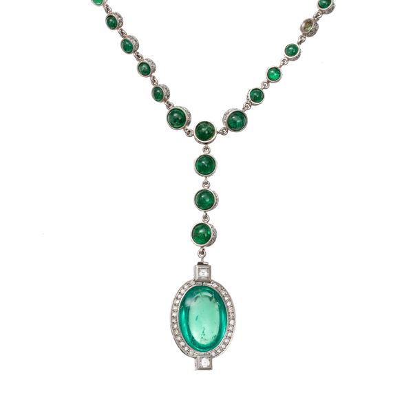 Collana in smeraldi chabocon e diamanti e oro bianco 18 kt