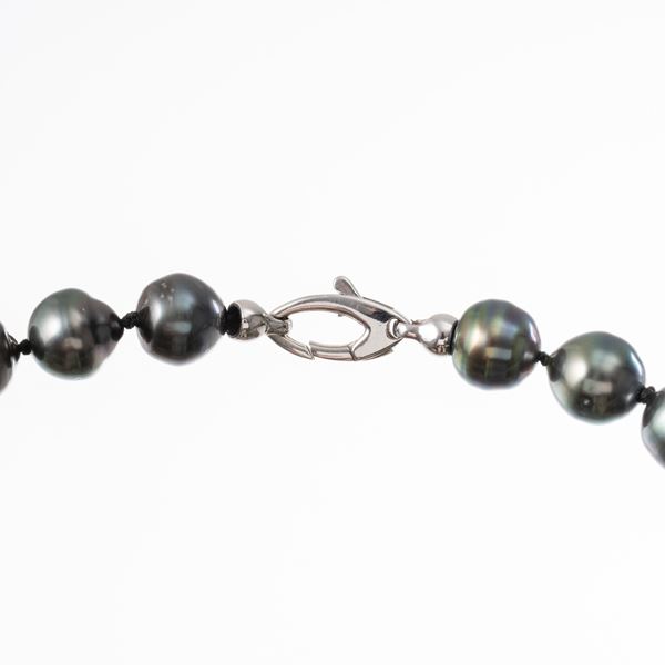 Collana di perle di thaiti a scalare da 10mm a 12mm con chiusura in oro bianco 18 kt