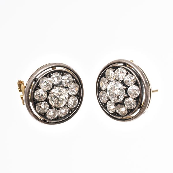 ORECCHINI IN ORO GIALLO 18 KT E ARGENTO CON DIAMANTI TAGLIO VECCHIO