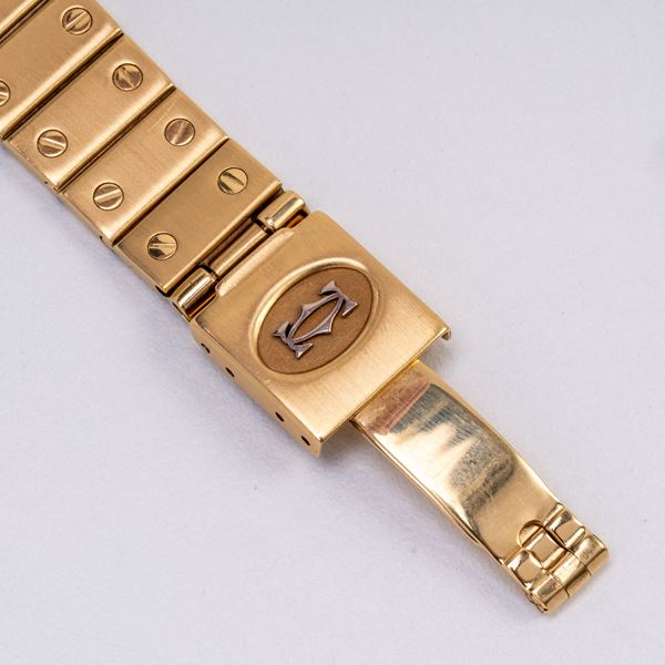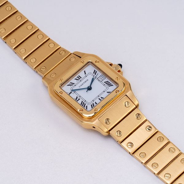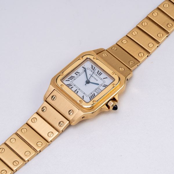 Note: Orologio solo tempo a carica automatica in oro giallo 18kt. Quadrante bianco, datario ad ore tre, indici romani neri. Sfere a gladio brunite blu. Corona in oro giallo 18kt con cabochon. Bracciale in oro giallo 18kt. Vetro minerale piatto. Fondello in oro giallo 18kt.