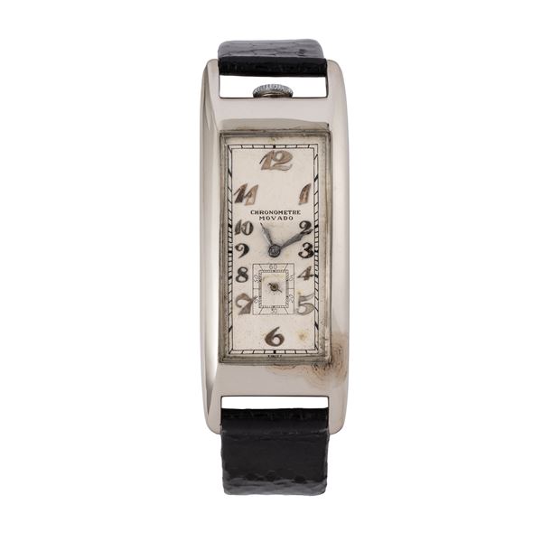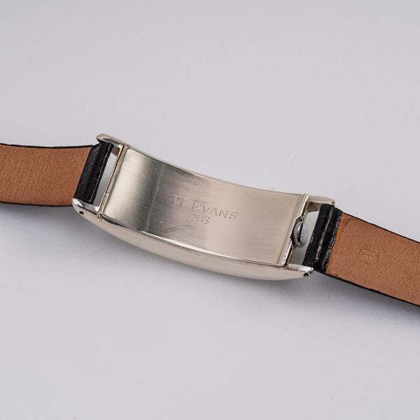 Note: Orologio solo tempo a carica manuale in oro bianco 18kt. Cassa 'Curvex'. Quadrante bianco, indici breguet argentati, sfere a foglia argentate. Piccoli secondi ad ore sei. Vetro minerale curvo. Fondello a cerniera in oro bianco 18kt con dedica.
