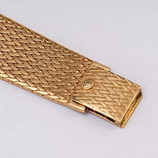 Note: Orologio da polso solo tempo a carica automatica in oro giallo 18kt con bracciale integrato in oro giallo 18kt. Quadrante champagne, indici e sfere a bastone in oro giallo 18kt. Datario ad ore sei. Vetro minerale piatto. Fondello a pressione in oro giallo 18kt.