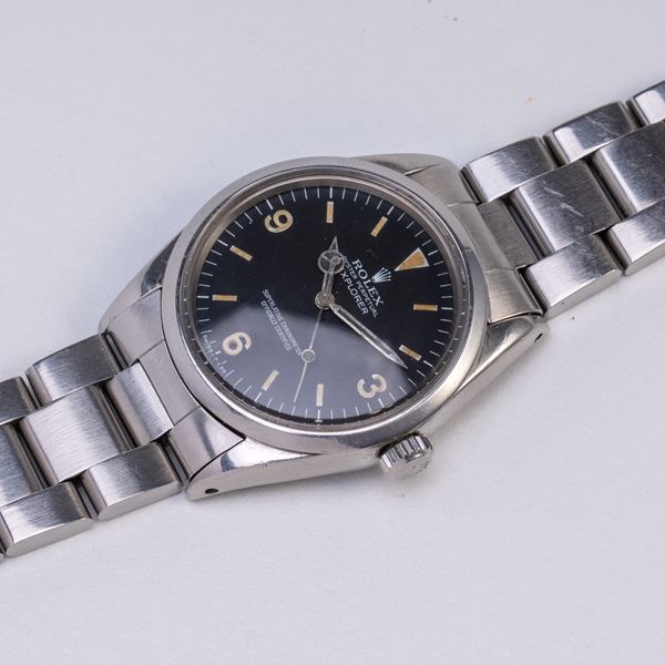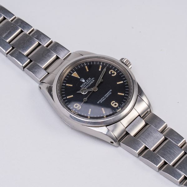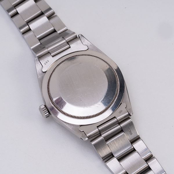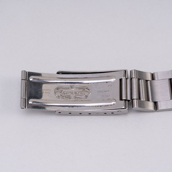 Note: Orologio solo tempo a carica automatica in acciaio. Quadrante nero, indici arabi ad ore tre, sei, nove con materiale luminescente. Sfere mercedes con materiale luminescente. Bracciale in acciaio. Vetro plexiglass bombato. Fondello a vite in acciaio.