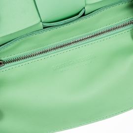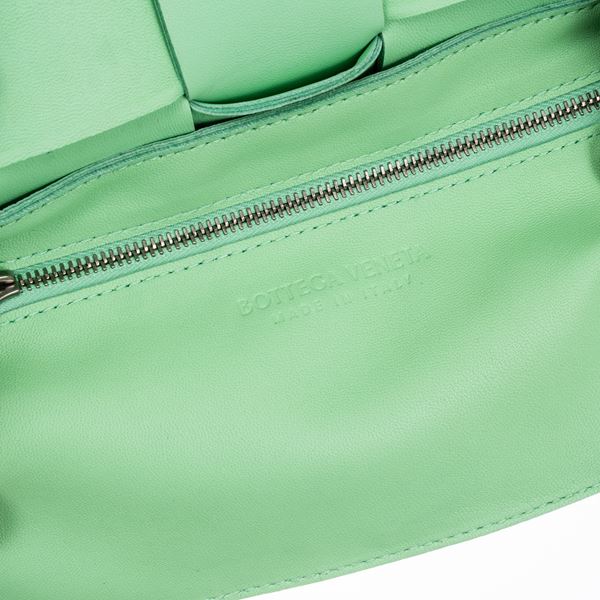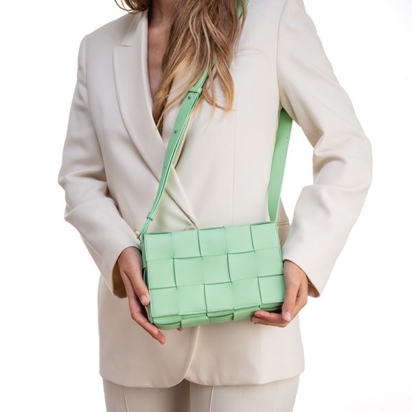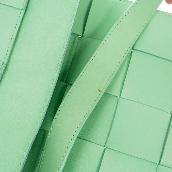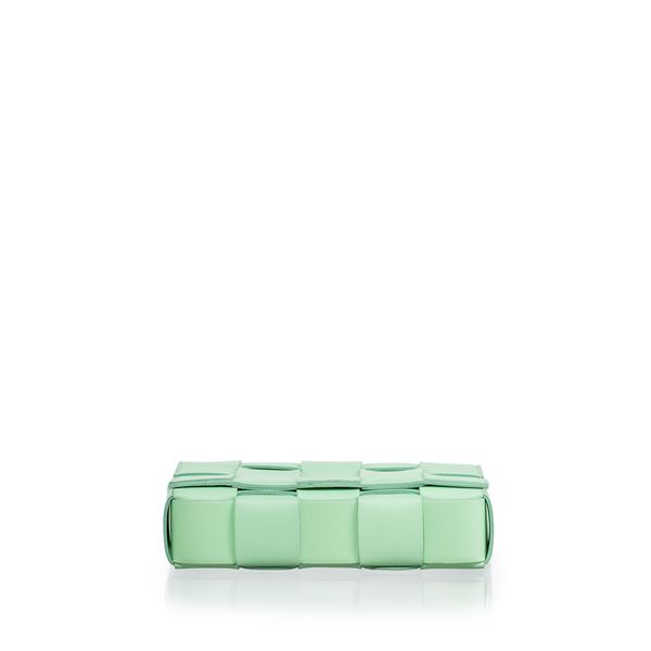 BOTTEGA VENETA BORSA A TRACOLLA CASSETTE IN PELLE CON MOTIVO INTRECCIO COLOR MENTA