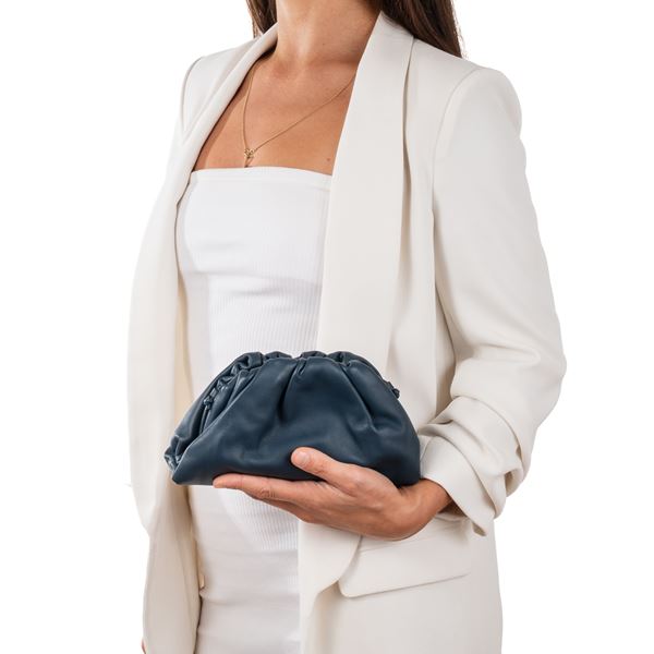 BOTTEGA VENETA MINI POUCH BLU CON TRACOLLA