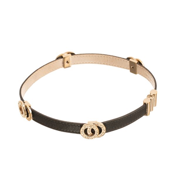 COLLARINO BULGARI IN PELLE COLORE NERO CON ELEMENTI DISTINTIVI