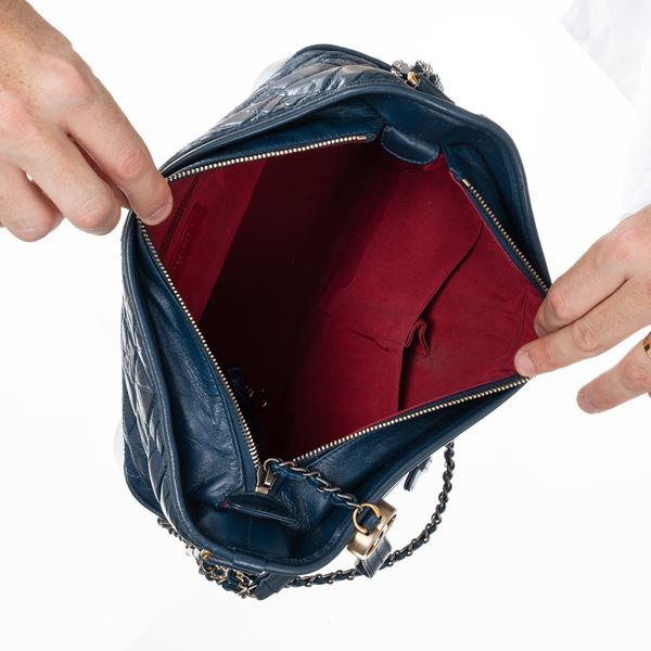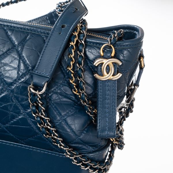 CHANEL BORSA GABRIELLE MEDIA IN PELLE EFFETTO INVECCHIATO BLU