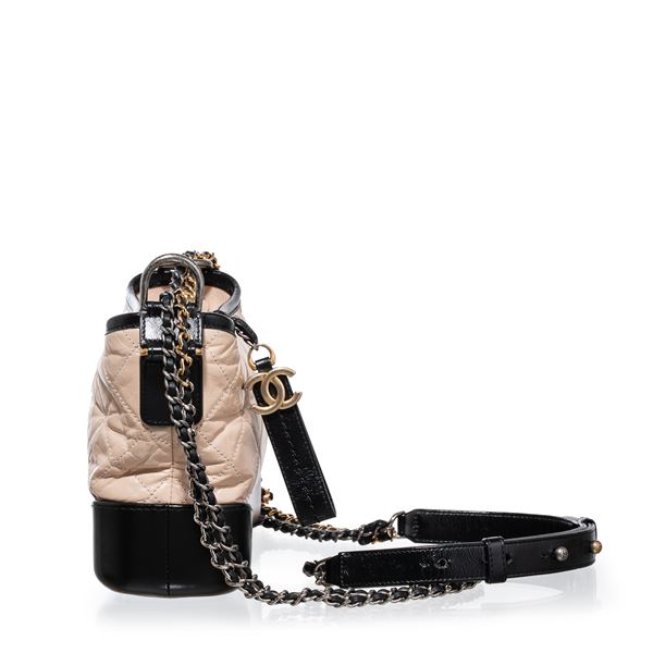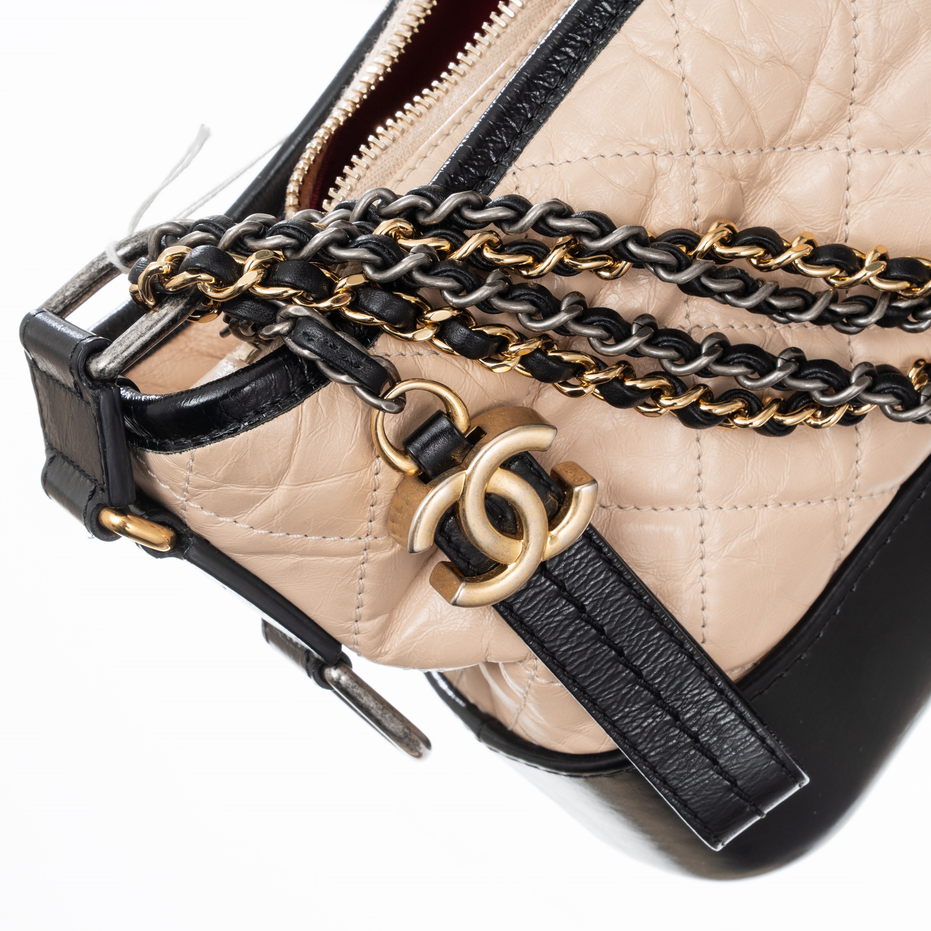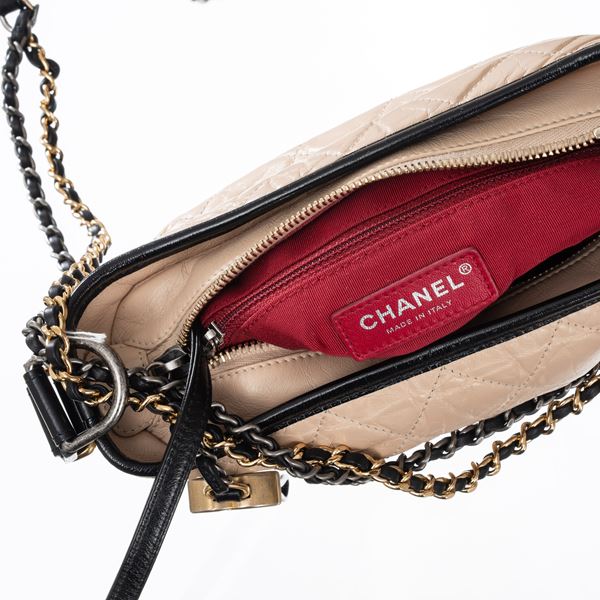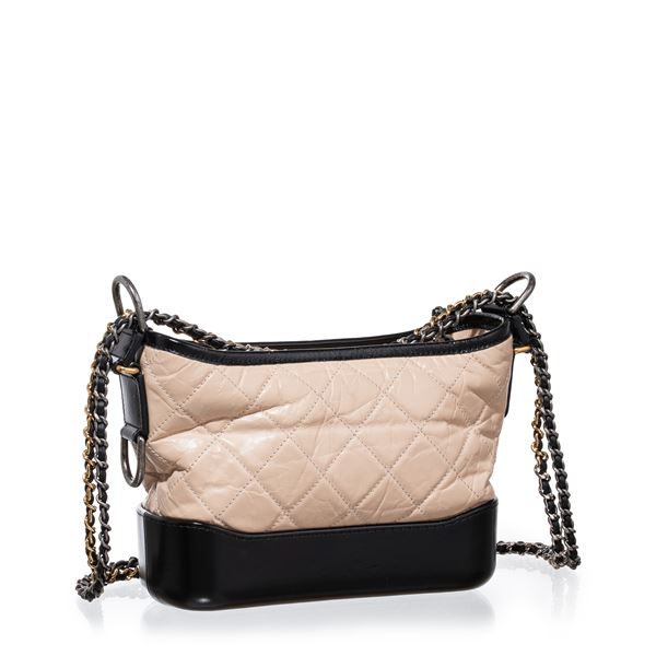 CHANEL BORSA GABRIELLE SMALL IN PELLE EFFETTO INVECCHIATO BEIGE E NERA