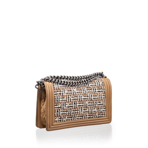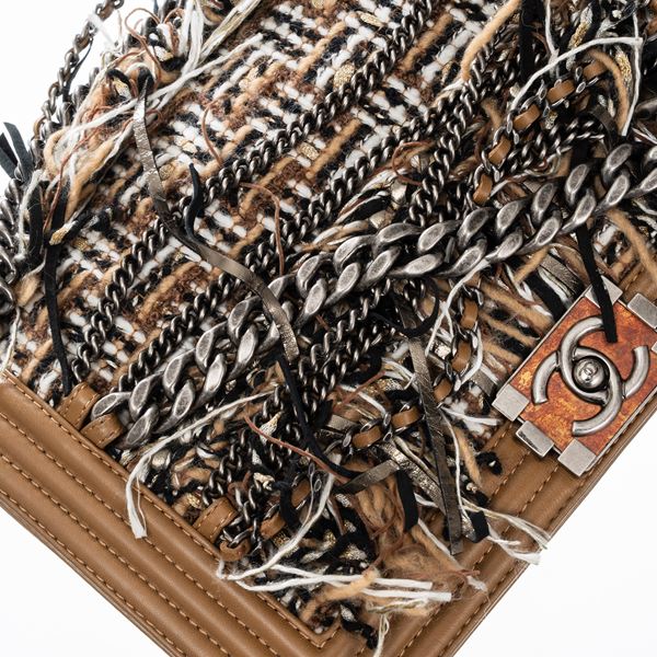 Materiale: Pelle d’agnello matelassé, catene e tweed