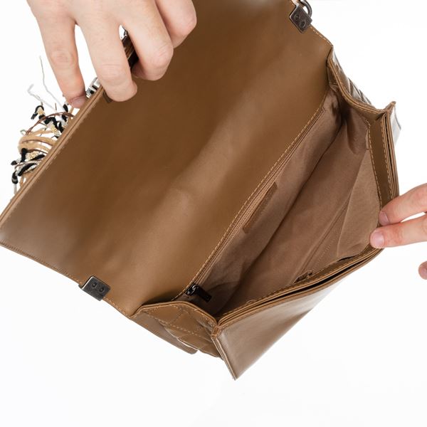 Colore: Marrone e dettagli multicolore (bianco/nero/oro/beige) e hardware rutenio