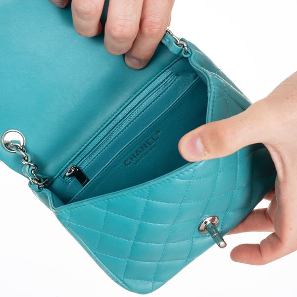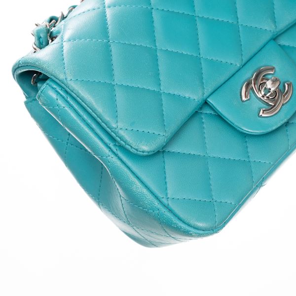 CHANEL MINI SQUARE IN PELLE D’AGNELLO MATELASSÉ COLOR AZZURRO - 2014