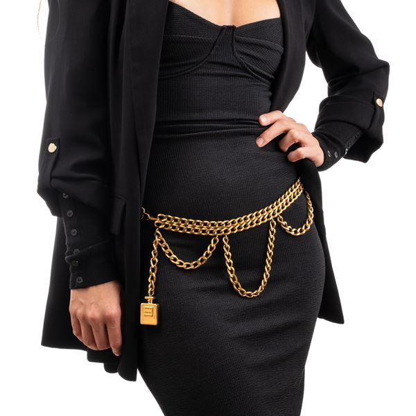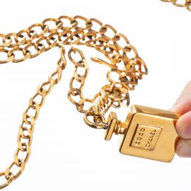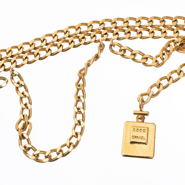 CHANEL VINTAGE CINTURA CATENA DORATA CON CIONDOLO PROFUMO COCO CHANEL
