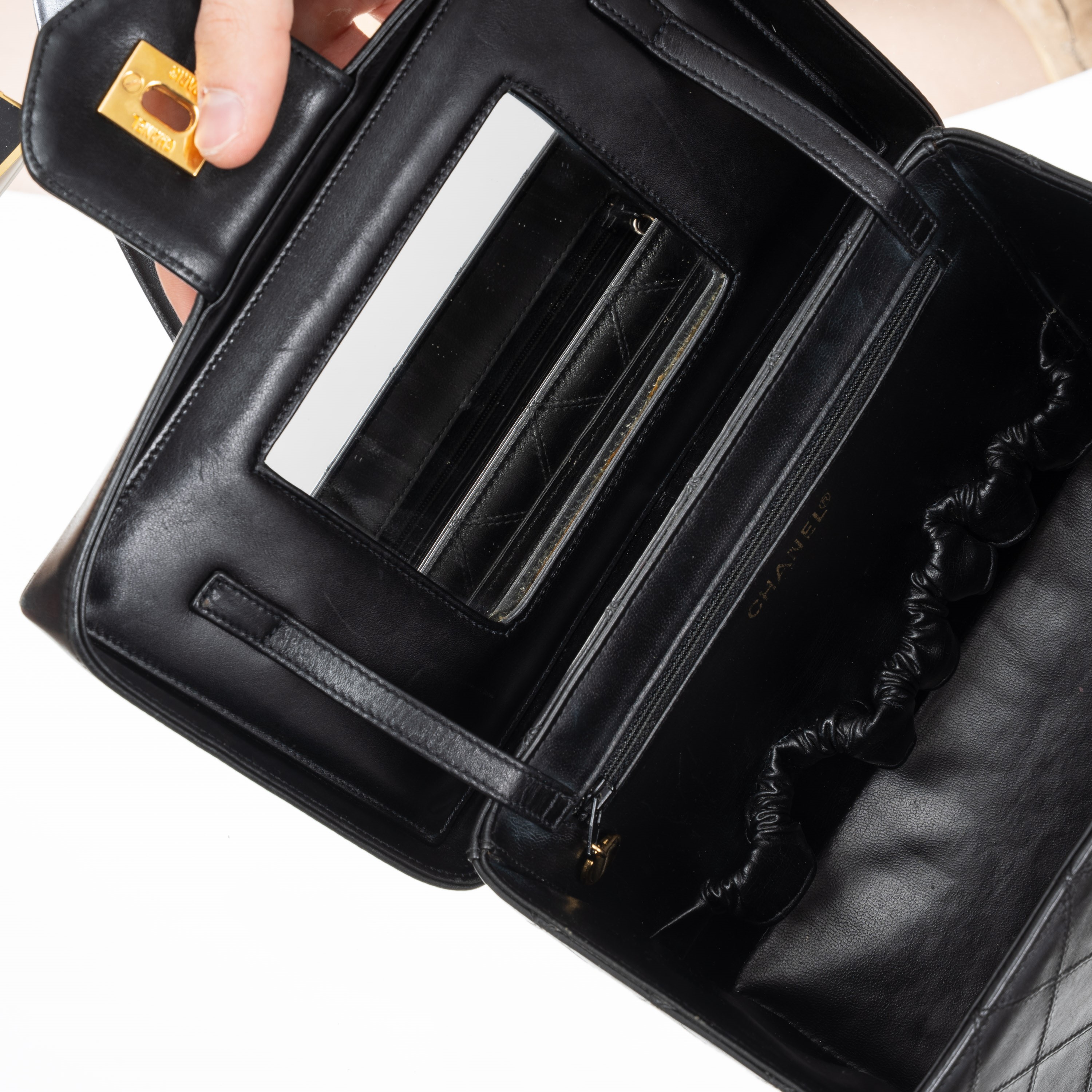 CHANEL VINTAGE TROUSSE VANITY IN PELLE D’AGNELLO COLOR NERO - 1994/1996