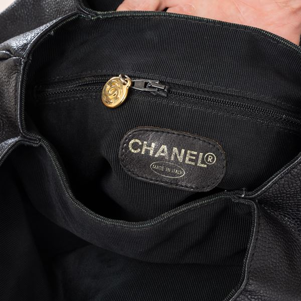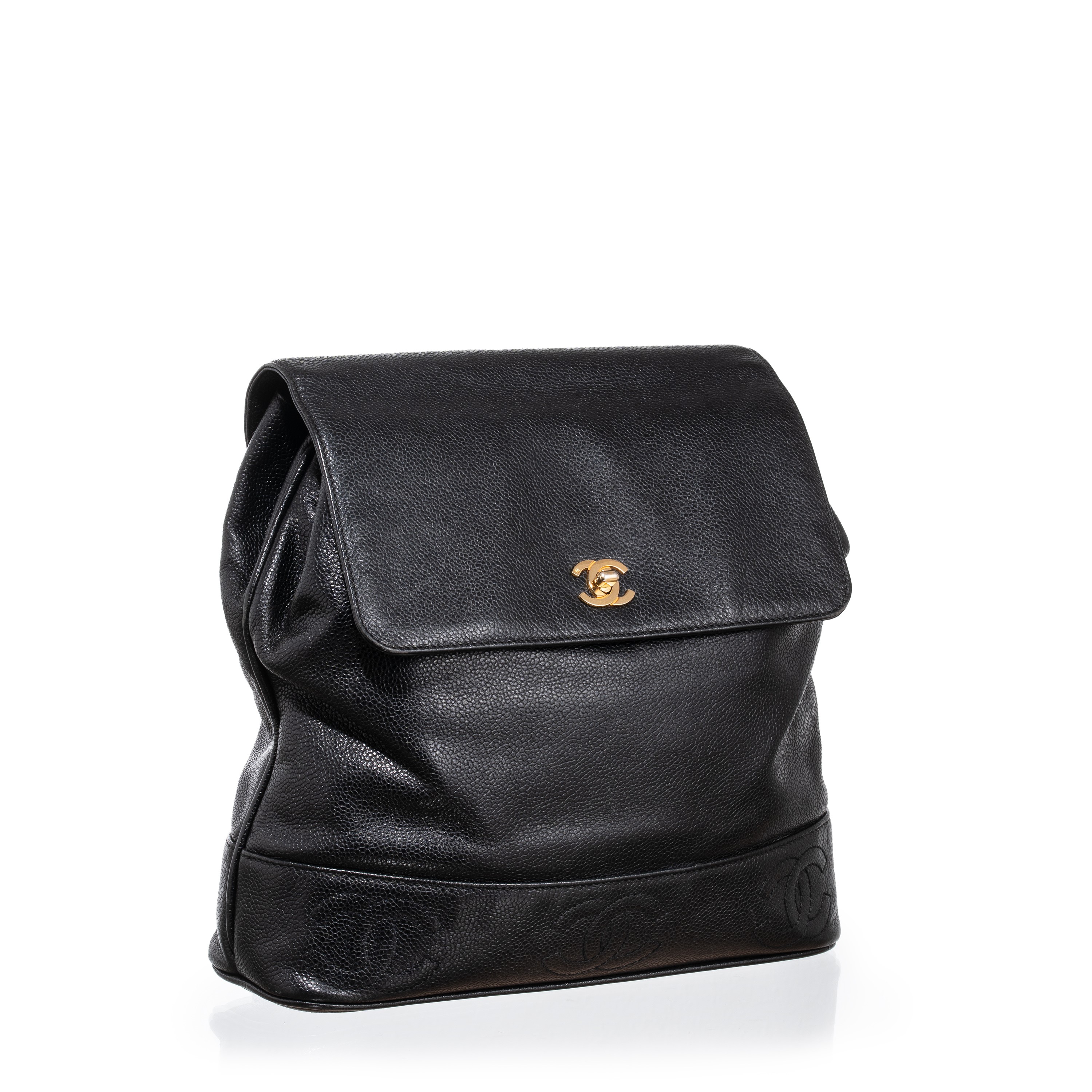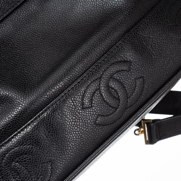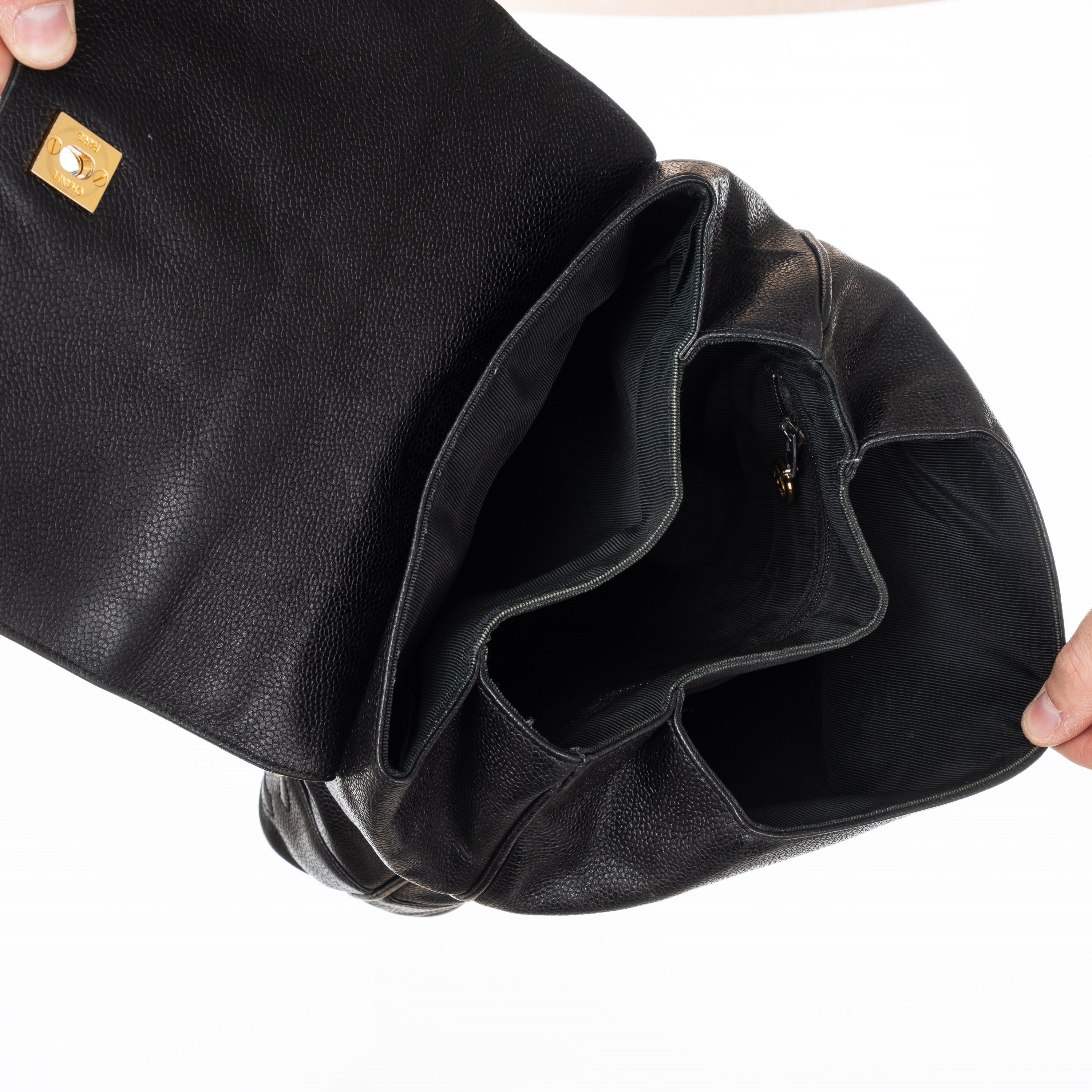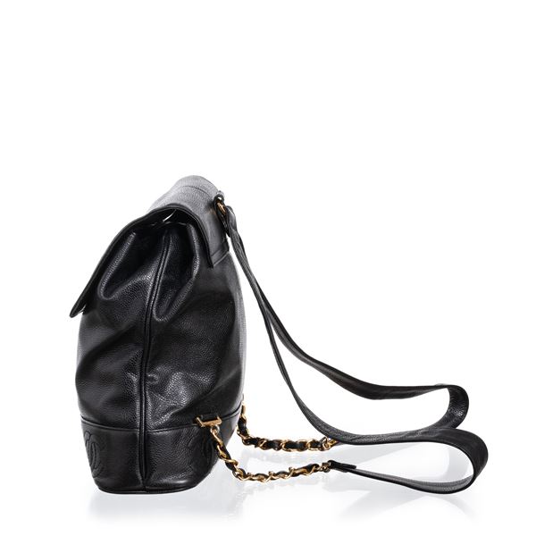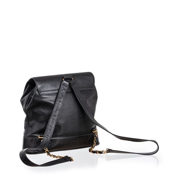 CHANEL VINTAGE ZAINO IN CAVIAR NERO METALLERIA DORATA