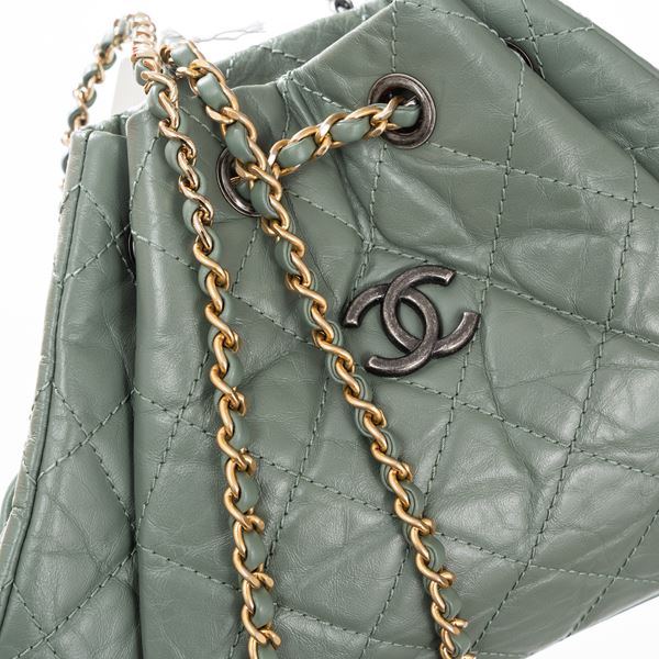 CHANEL ZAINO GABRIELLE IN PELLE EFFETTO INVECCHIATO VERDE SALVIA - 2018