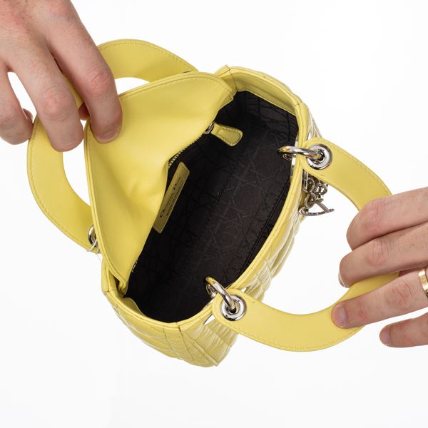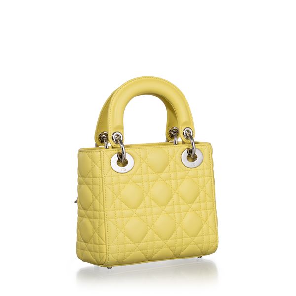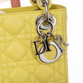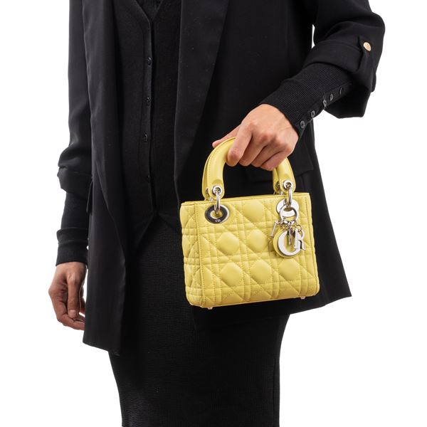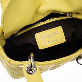 DIOR LADY MINI IN PELLE D’AGNELLO COLOR LIME E METALLERIA PALLADIO