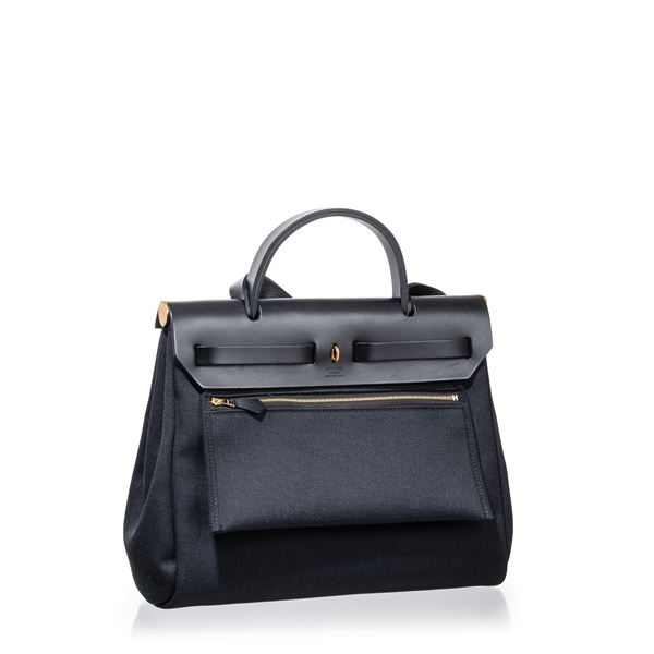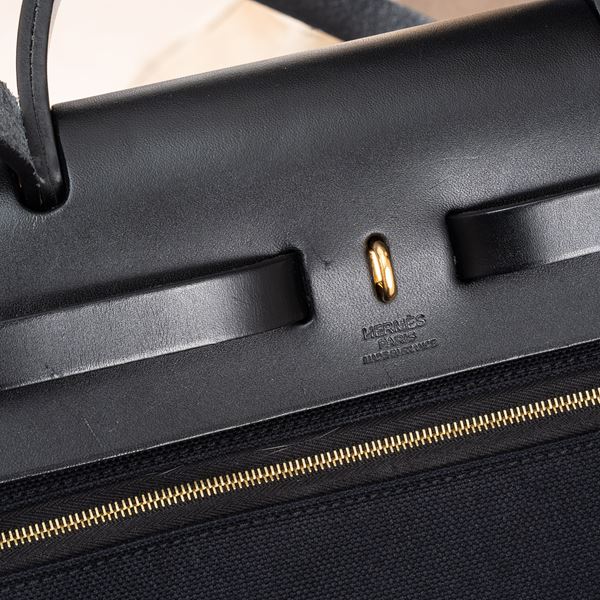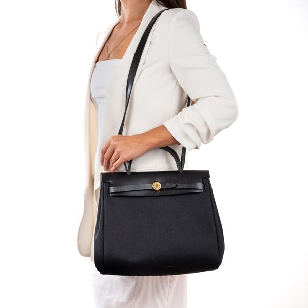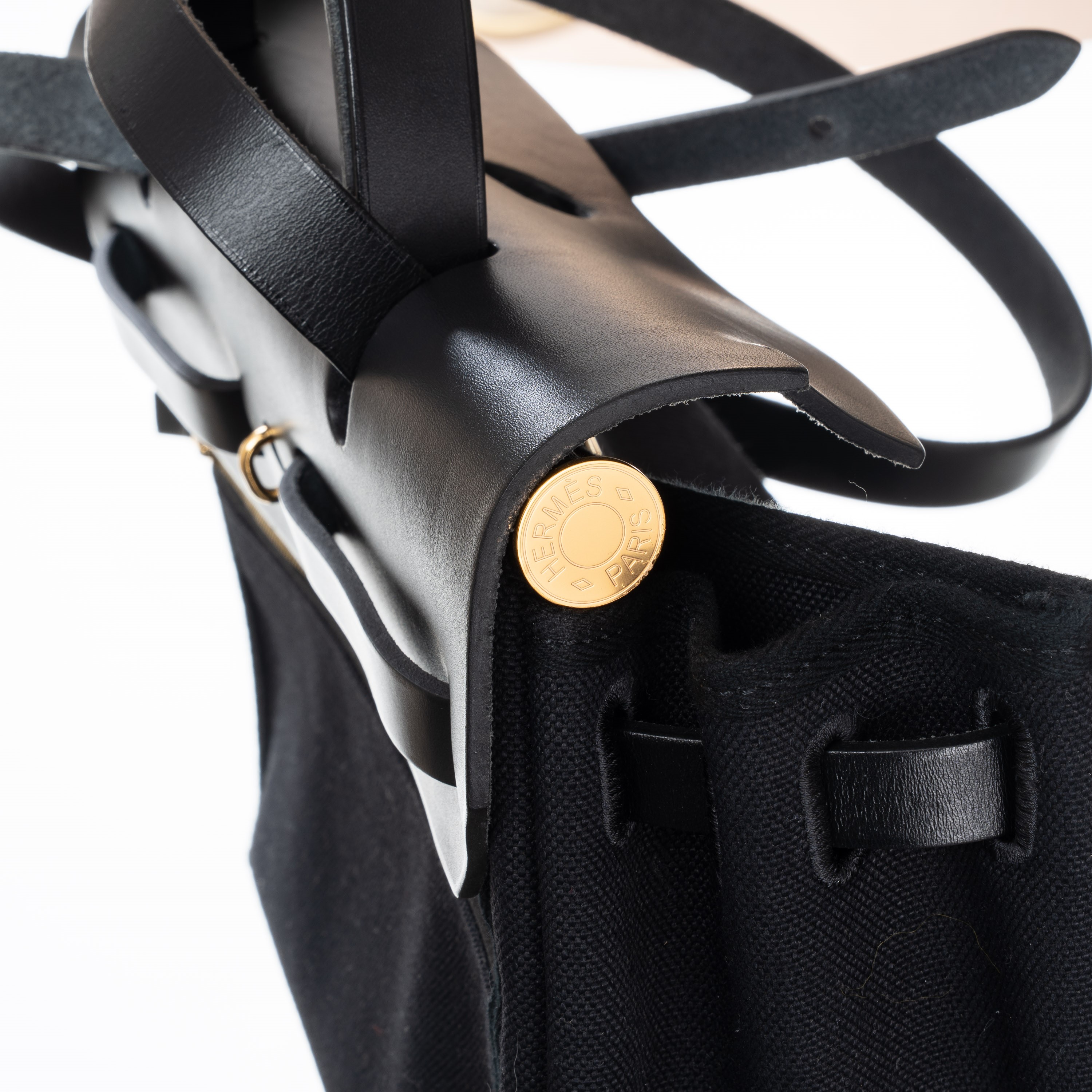 HERMÈS HERBAG 31 IN TELA MILITAIRE E VACCHETTA HUNTER NERA GHW - 2022