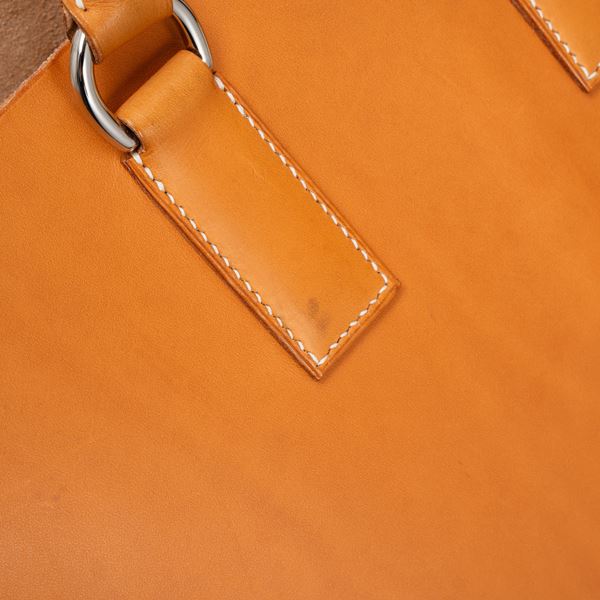 HERMÈS SECCHIELLO CABAS VACHE NATURELLE PALLADIUM HARDWARE 2007