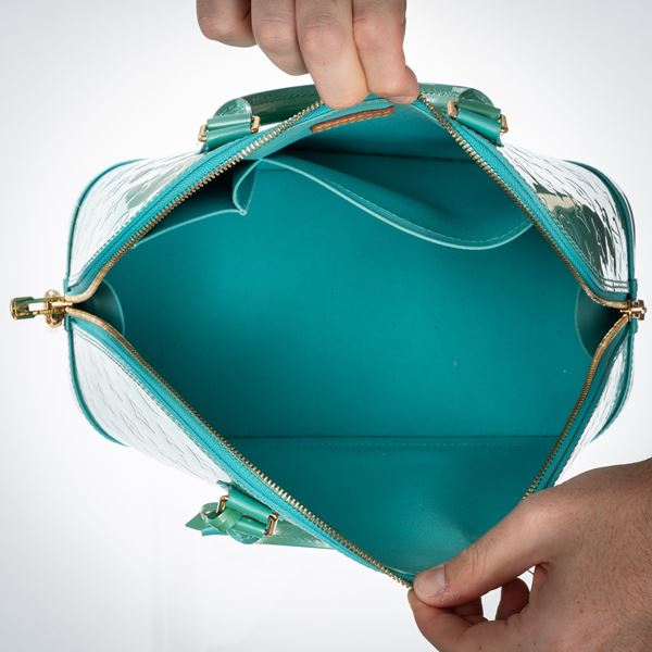 LOUIS VUITTON ALMA PM MONOGRAM VERNIS AZZURRA, GHW - 2012