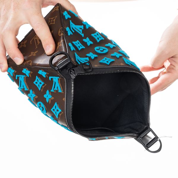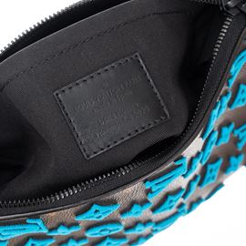 LOUIS VUITTON TRIANGLE MESSENGER TUFFETAGE IN TELA MONOGRAM E DETTAGLI LOGHI AZZURRI IN RILIEVO