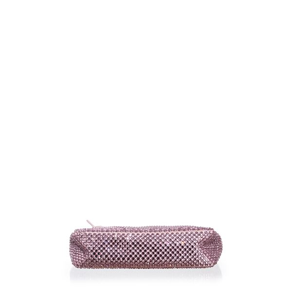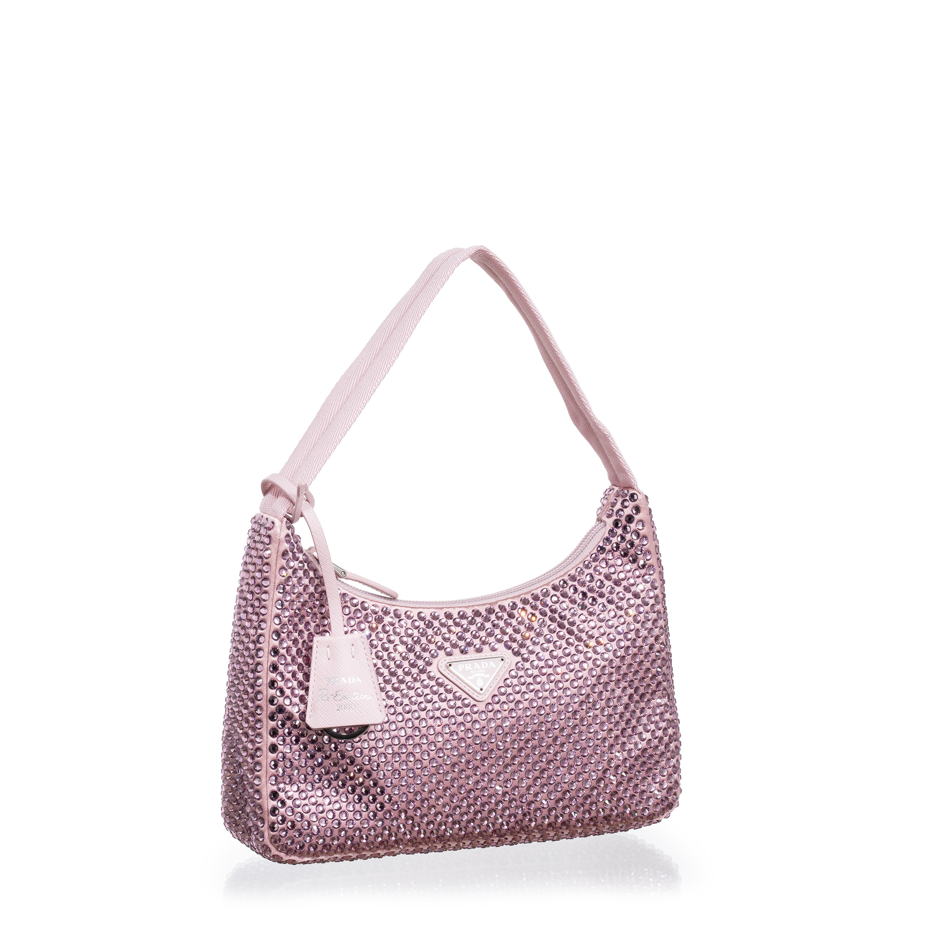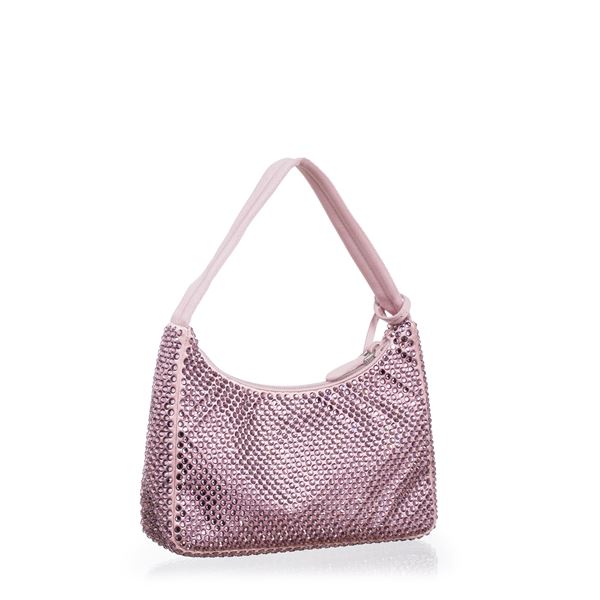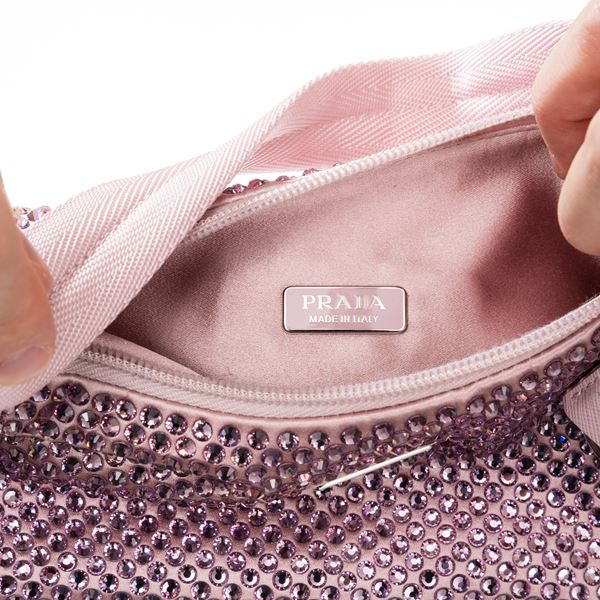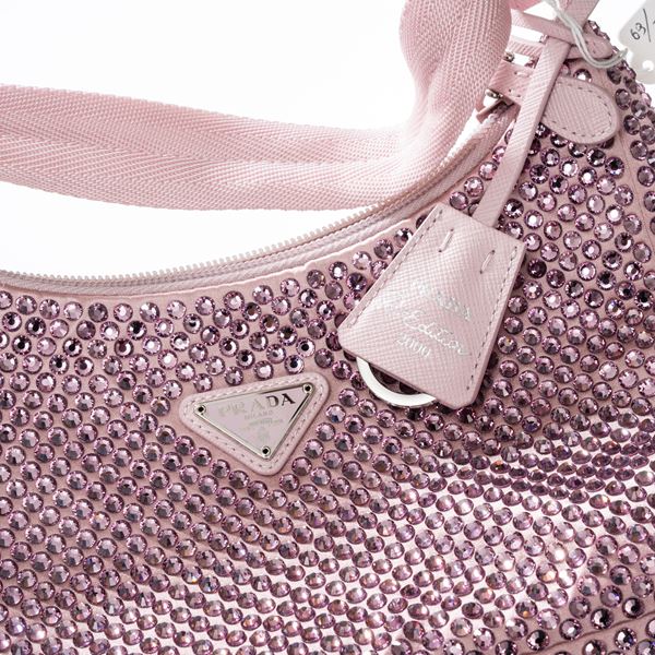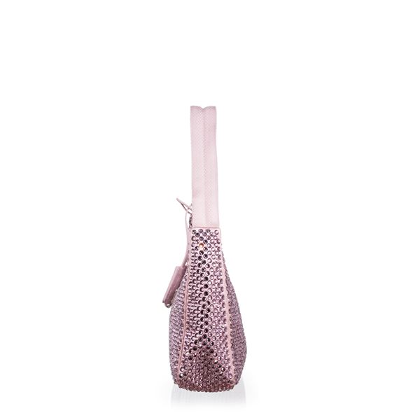 PRADA MINI BORSA RE-EDITION IN RASO CON CRISTALLI COLORE ROSA ALABASTRO