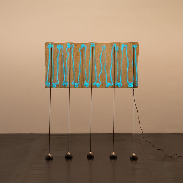 Struttura regolabile in acciaio, basi in acciaio, materiale sintetico e neon