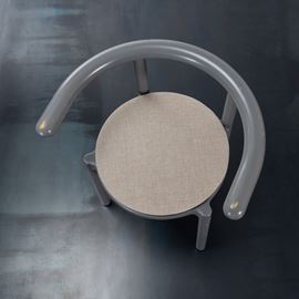 Struttura in materiale plastico e gambe acciaio, cuscini in tessuto