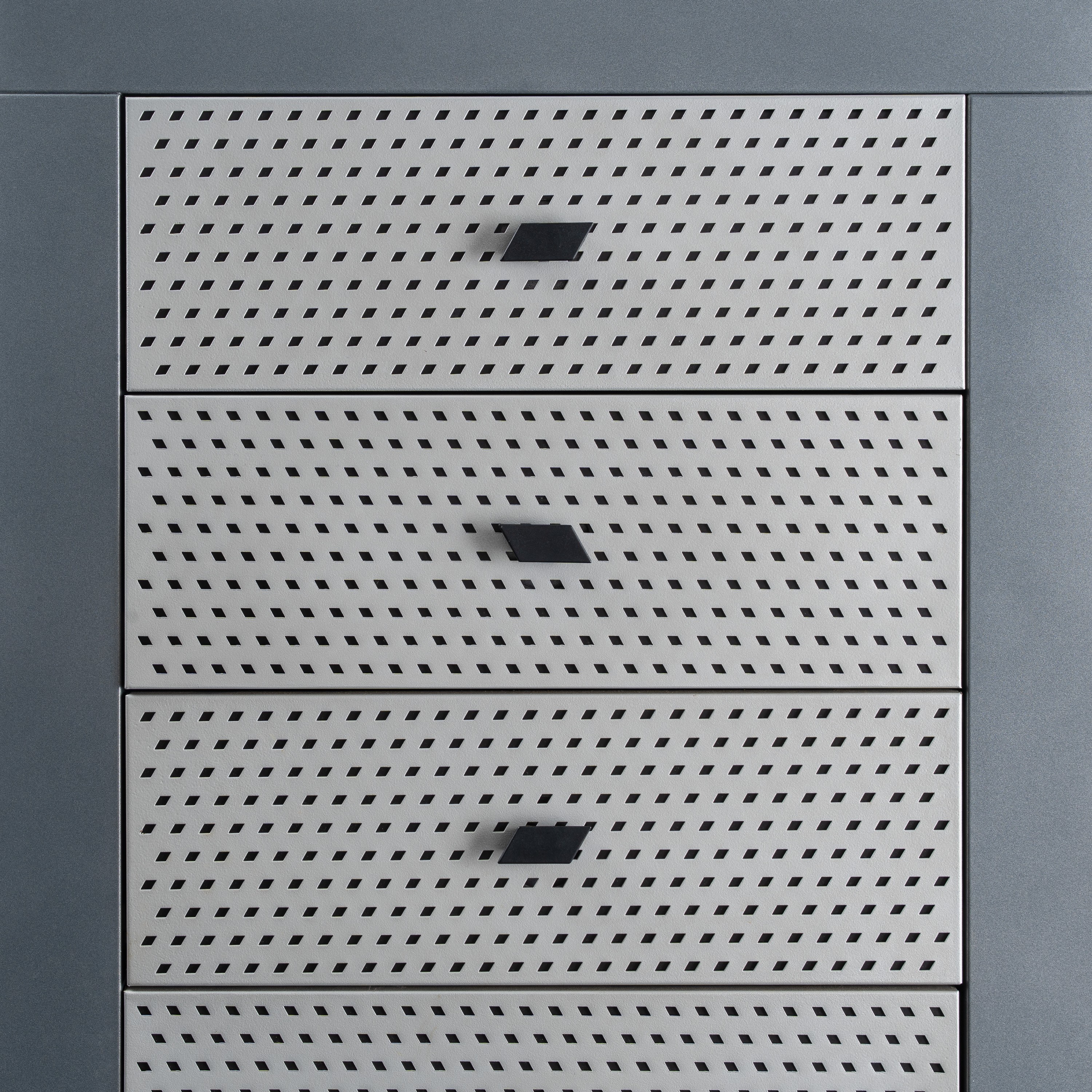 Metallo verniciato, trattato in superficie a laser, maniglie in nylon nero lucido