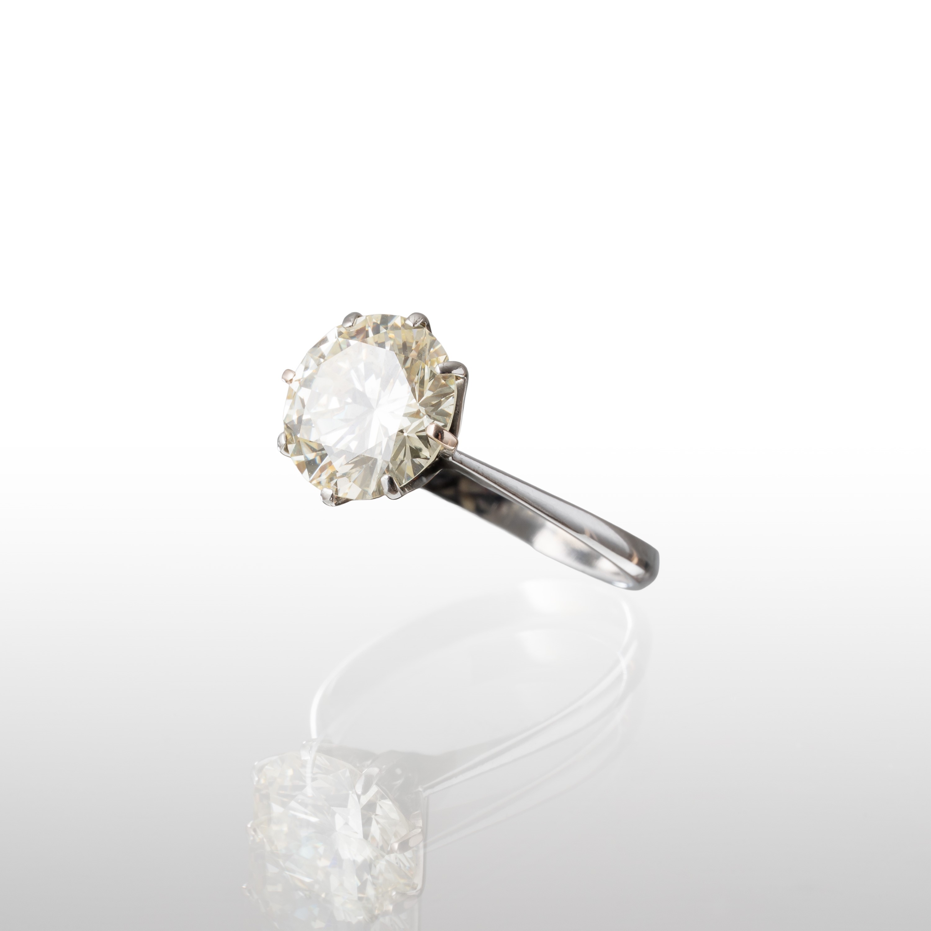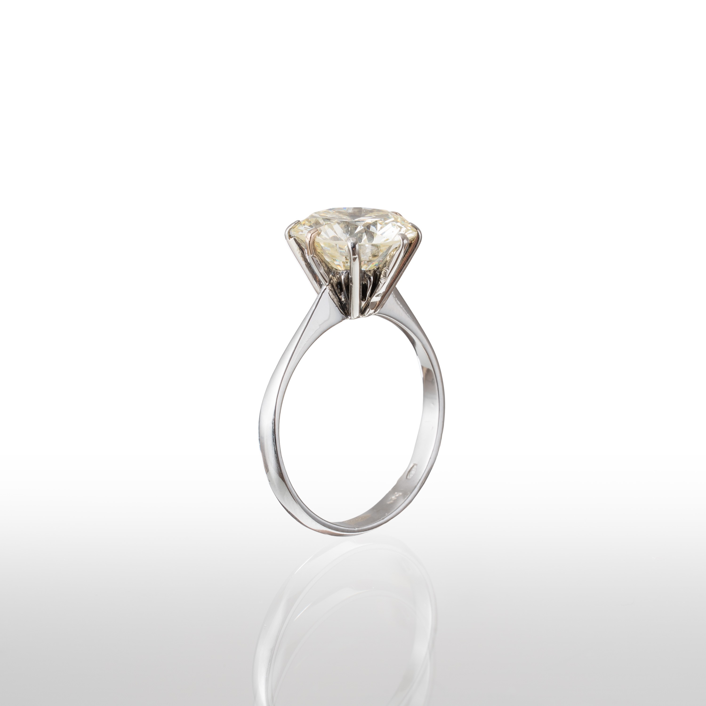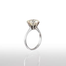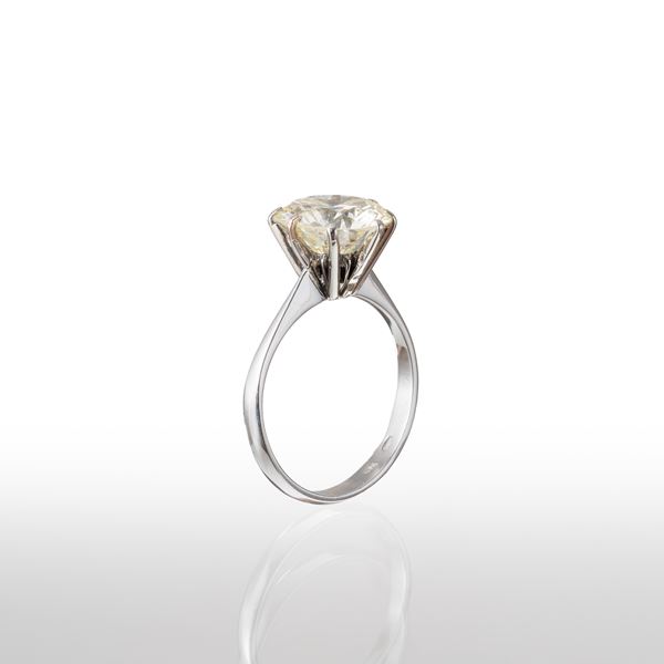 Anello in oro bianco 18 kt con diamante di 3,62 ct, colore Q-R, taglio brillante, purezza VVS2, dimensioni 10,06 - 10,17 X 5,81 mm, misura 54/14, peso 3,10 gr