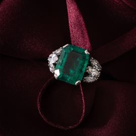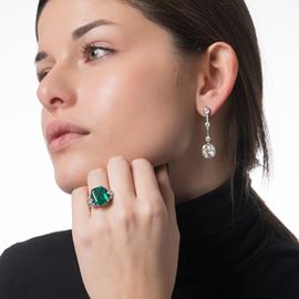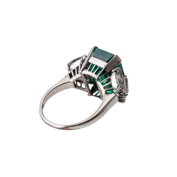 ANELLO IN ORO BIANCO CON SMERALDO CENTRALE E DIAMANTI