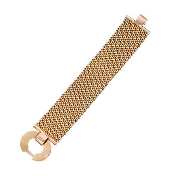 Bracciale in oro giallo 18 kt, lunghezza 20 cm, larghezza 34 mm, peso 136,50 gr