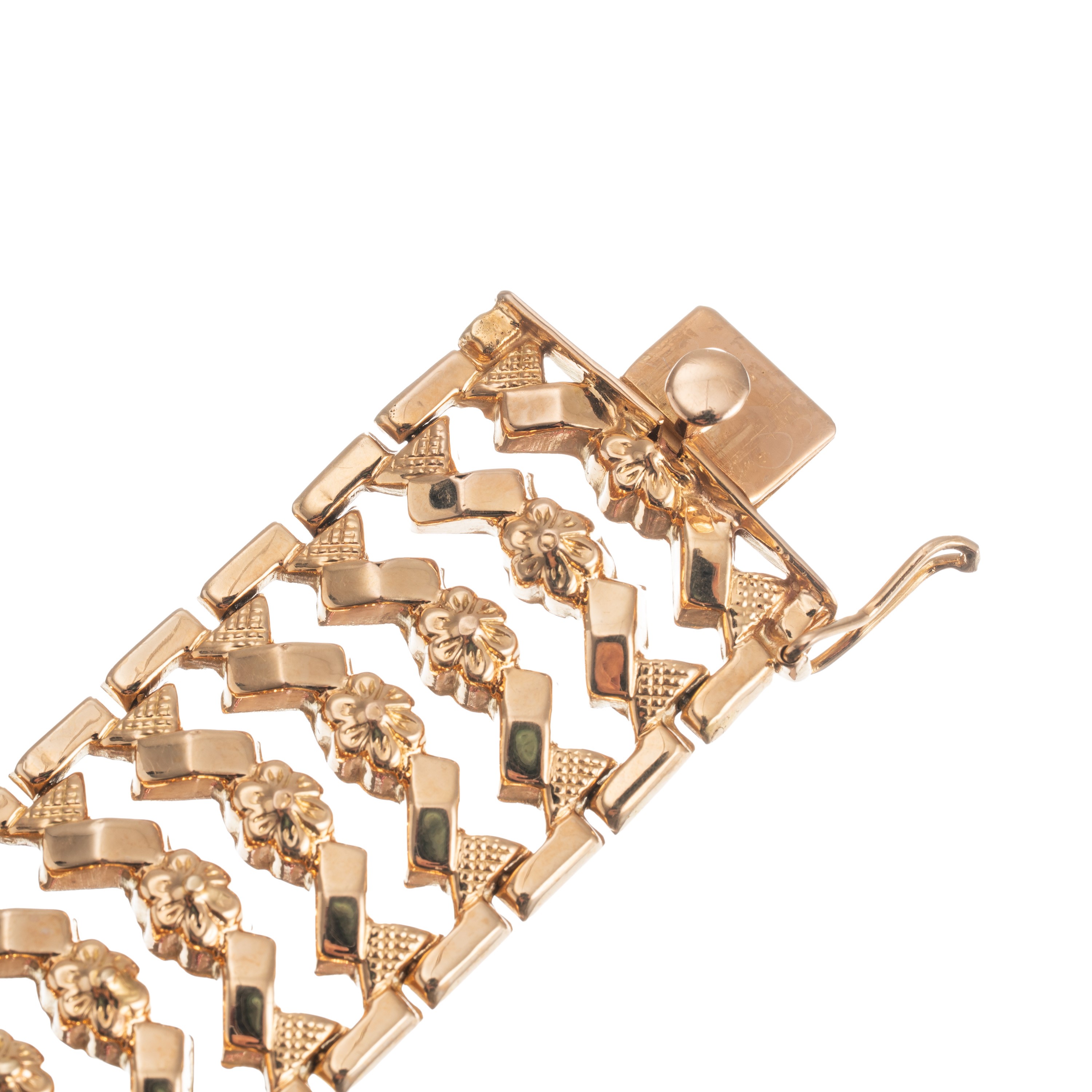 Bracciale in oro giallo 18 kt, lunghezza 18,50 cm, larghezza 22,50 mm, peso 33,40 gr
