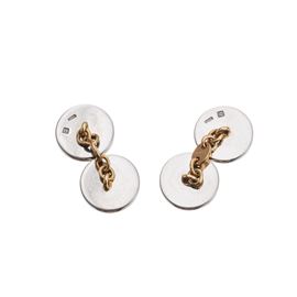 Set di gemelli Bulgari Bulgari in oro giallo e bianco 18kt, diametro 13 mm, peso totale: 9,81 gr. Con scatola Bulgari