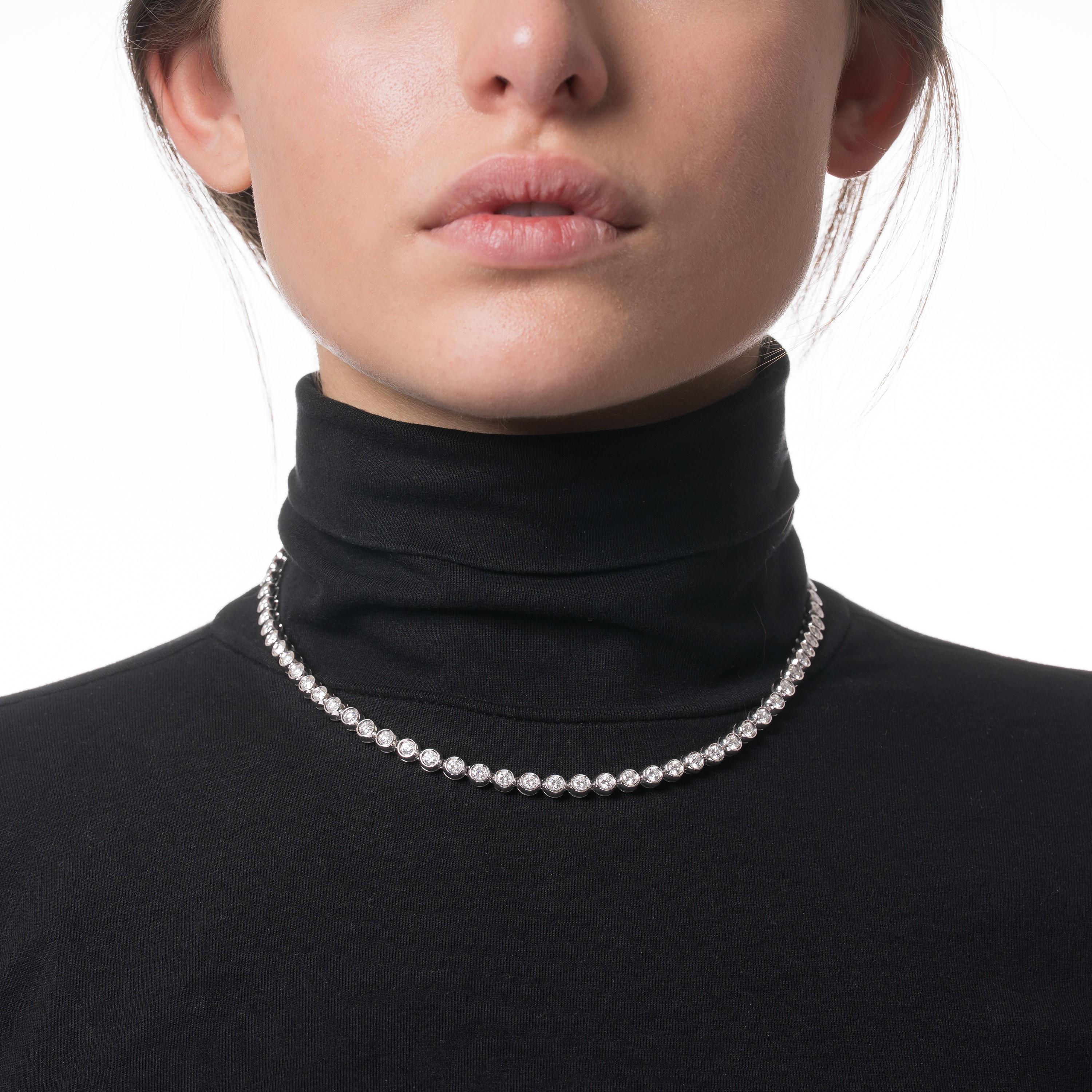 Girocollo in oro bianco 18 kt, diamanti taglio brillante 6,80 ct, lunghezza 41 cm, peso 43,90 gr