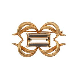 SPILLA E GIROCOLLO IN ORO GIALLO E QUARZI CITRINI