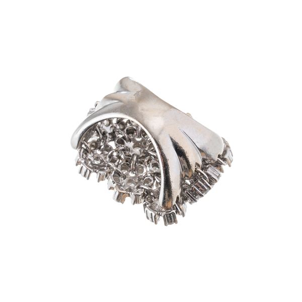 Anello in oro bianco 18 kt, con settanta diamanti, taglio brillante, per stimati 1 ct totali.